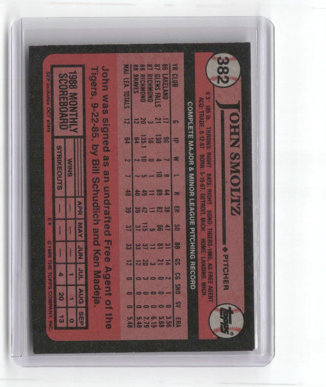 image1989 Topps 382 John Smoltz Rookie RC Baseball Card