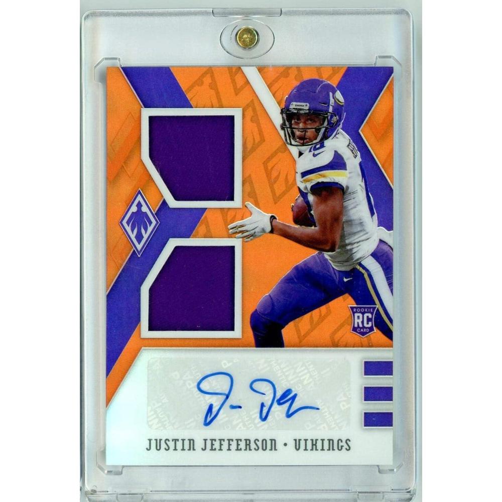 2020 Panini Phoenix Rookie Dual Jersey Auto Orange Justin Jefferson #RDA-JJ /50 Rookie Patch Autograph RPA Rookie RC Football Card