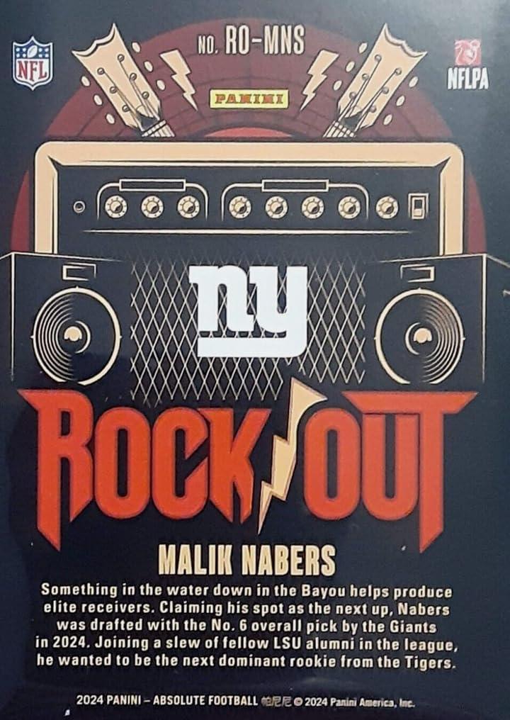 2024 Panini Absolute Malik Nabers #RO-MNS Rock Out New York Giants Rookie RC Football Card