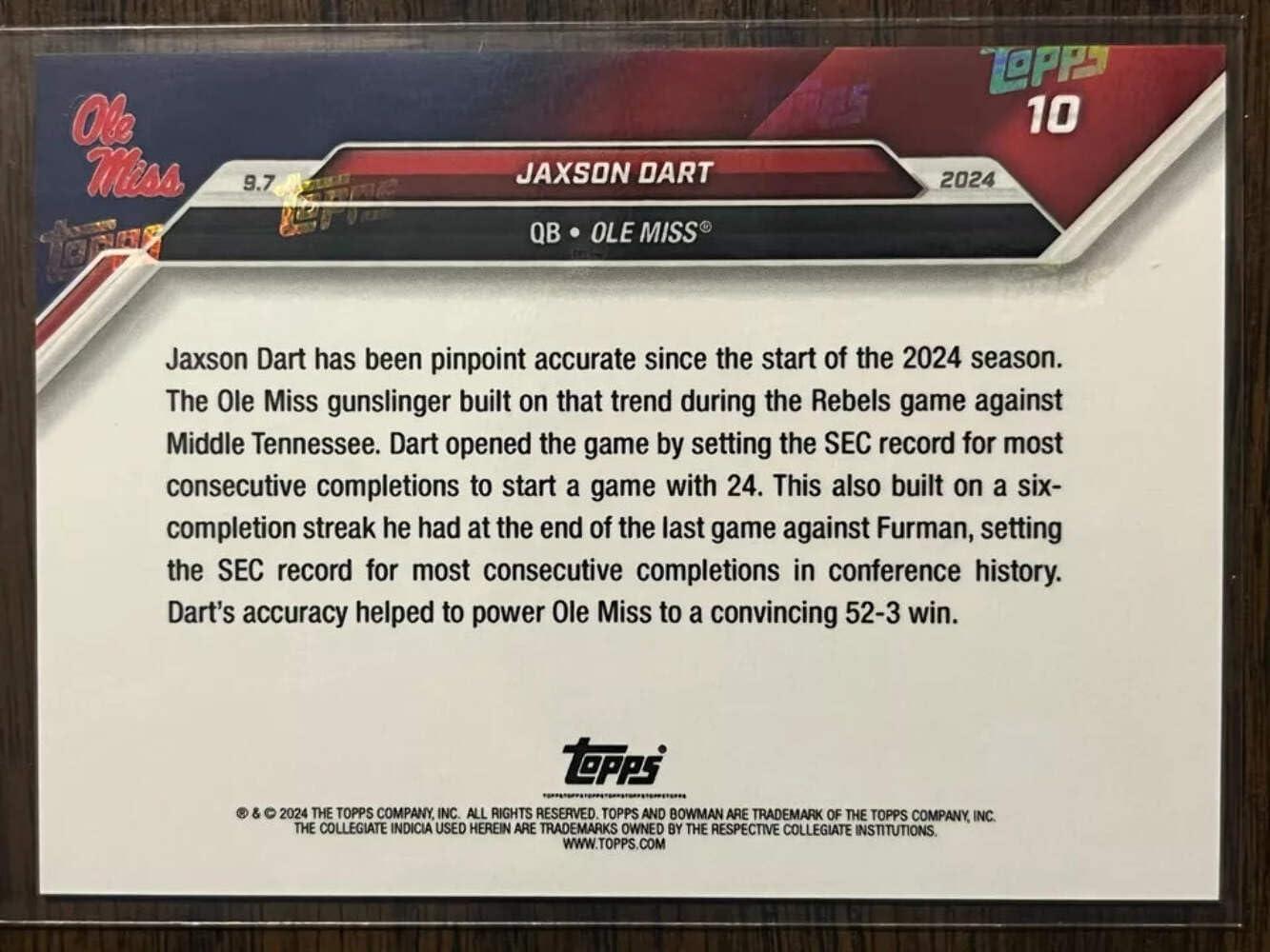 2024 Topps Bowman U Now Jaxson Dart #10 Purple #/25 Ole Miss Rebels Football Card