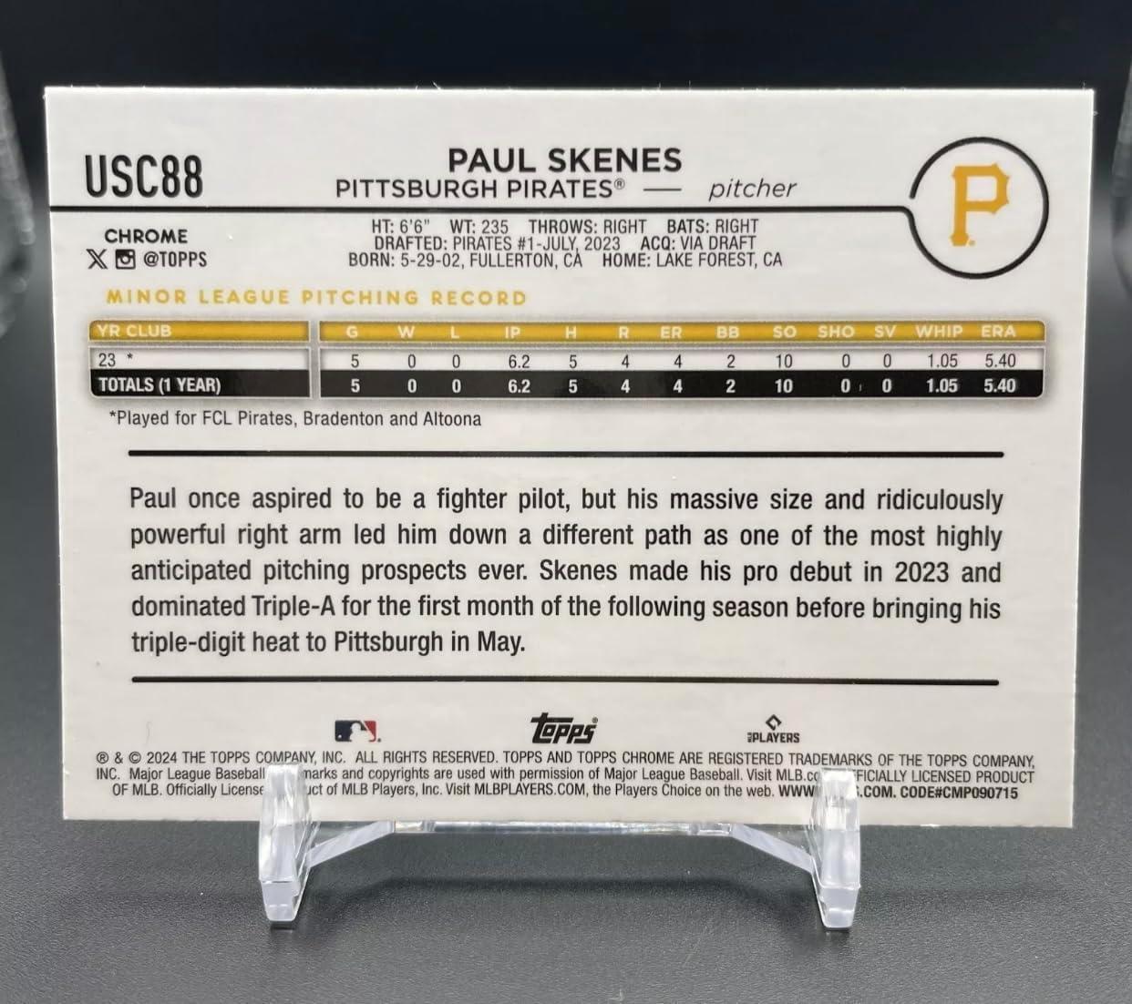 2024 Topps Update Series Chrome Paul Skenes #USC88 Rookie RC Pittsburgh Pirates Baseball Card
