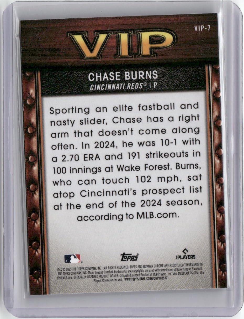 2025 Bowman #VIP-7 Chase Burns Very Important Prospects Baseball Card