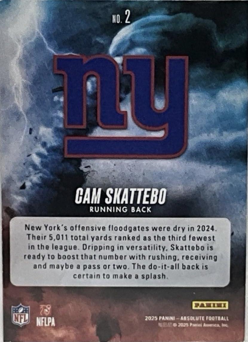 2025 Panini Absolute Cam Skattebo #2 By Storm New York Giants Rookie RC Football Card