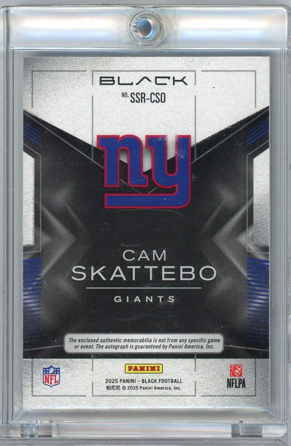 2025 Panini Black Cam Skattebo #SSRCSO /99 Sizable Signatures Relic Auto Rookie RC Football Card
