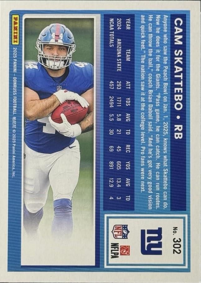 2025 Panini Donruss Cam Skattebo #302 Purple Press Proof New York Giants Rookie RC Football Card
