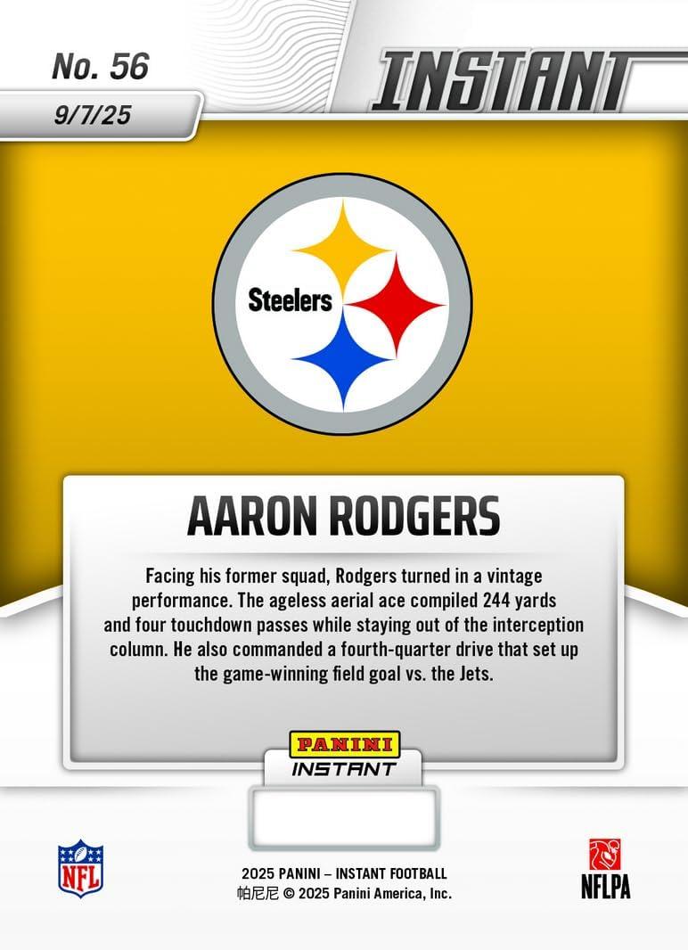 2025 Panini Instant Aaron Rodgers #56 Forges Fantastic Win Vs Former Team Pittsburgh Steelers Football Card