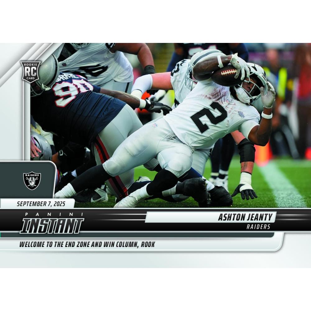 2025 Panini Instant Ashton Jeanty #55 Welcome to the Endzone and Win Column, Rook Las Vegas Raiders Rookie RC Football Card
