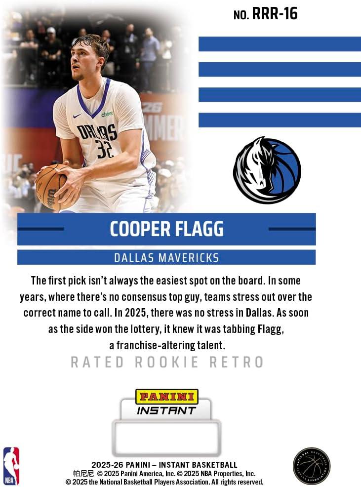 2025 Panini Instant NBA Cooper Flagg #16 Rated Rookie Retro Dallas Mavericks Rookie RC Basketball Card