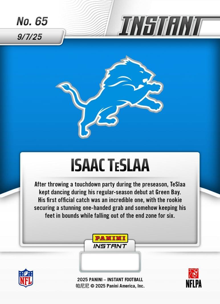 2025 Panini Instant NFL Isaac TeSlaa #65 Stretches for Sensational Touchdown Grab Detroit Lions Rookie RC Football Card
