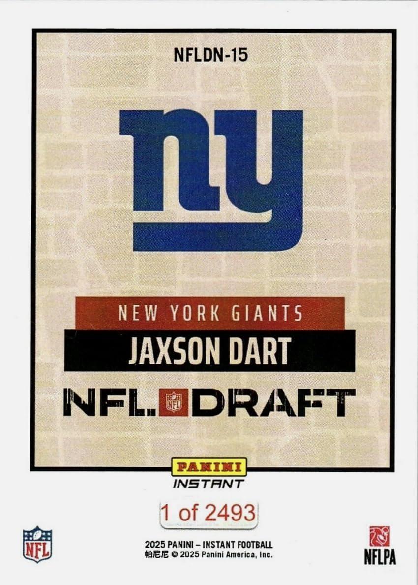 2025 Panini Instant NFL Jaxson Dart #15 Draft Night New York Giants Rookie RC Football Card