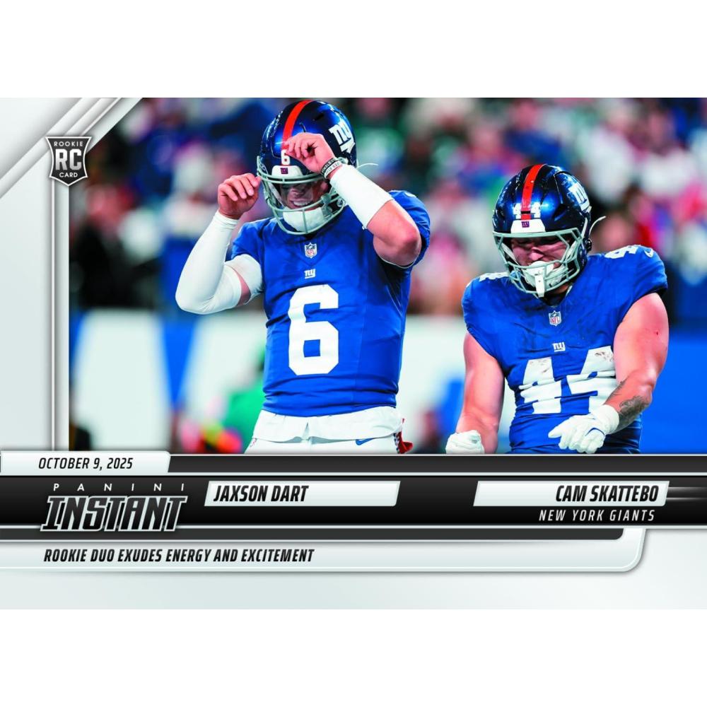 image2025 Panini Instant NFL Jaxson DartCam Skattebo 139 Rookie Duo Exudes Energy ampamp Excitement New York Giants Rookie RC Football Card