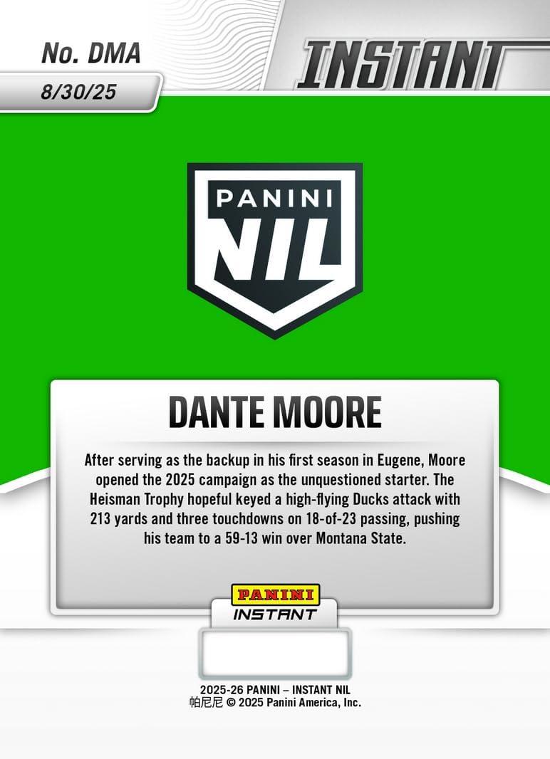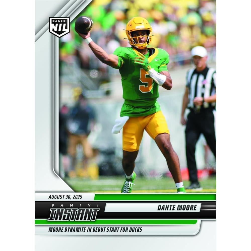 2025 Panini Instant NIL Dante Moore #DMA Moore Dynamite in Debut Start for Ducks Oregon Ducks Rookie RC Football Card