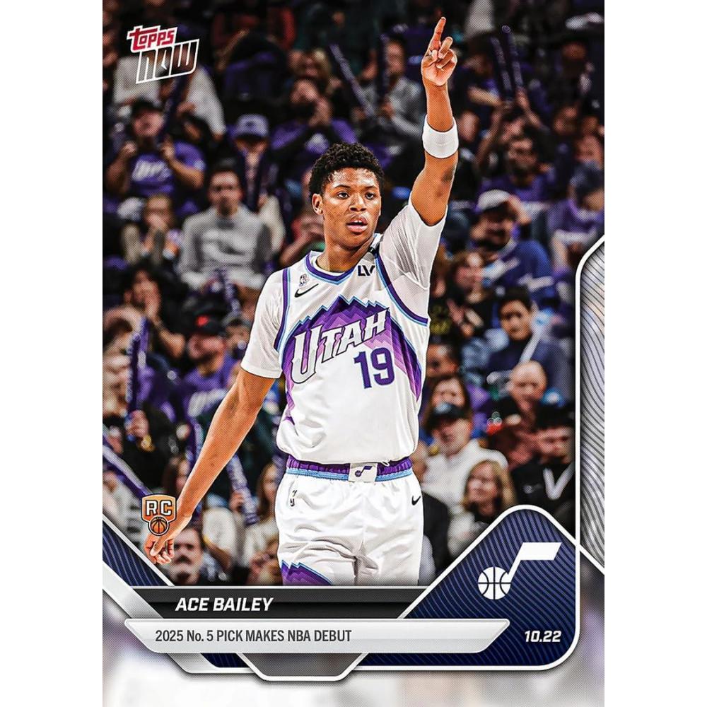 2025 Topps Now Ace Bailey #9 2025 Number 5 Pick Makes NBA Debut Utah Jazz Rookie RC Basketball Card