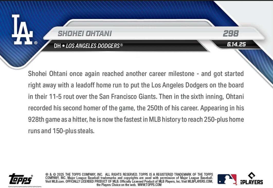 image2025 Topps Now Shohei Ohtani 298 Superstar Slugs 250th Career Home Run Los Angeles Dodgers Baseball Card