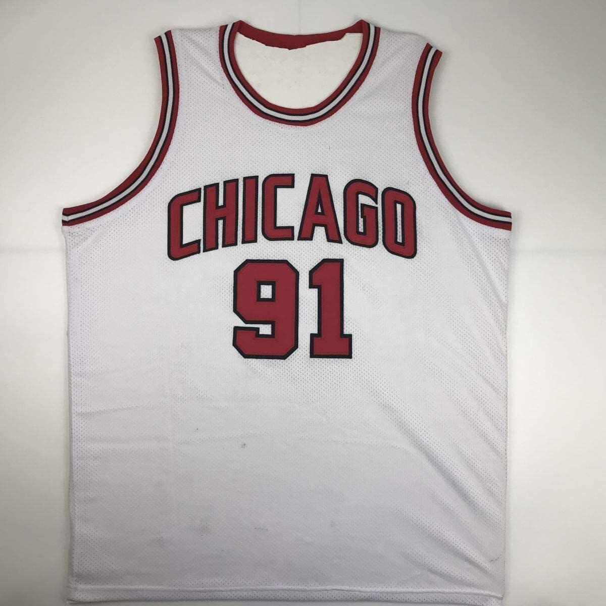 Autographed/Signed Dennis Rodman Chicago White Basketball Jersey JSA COA