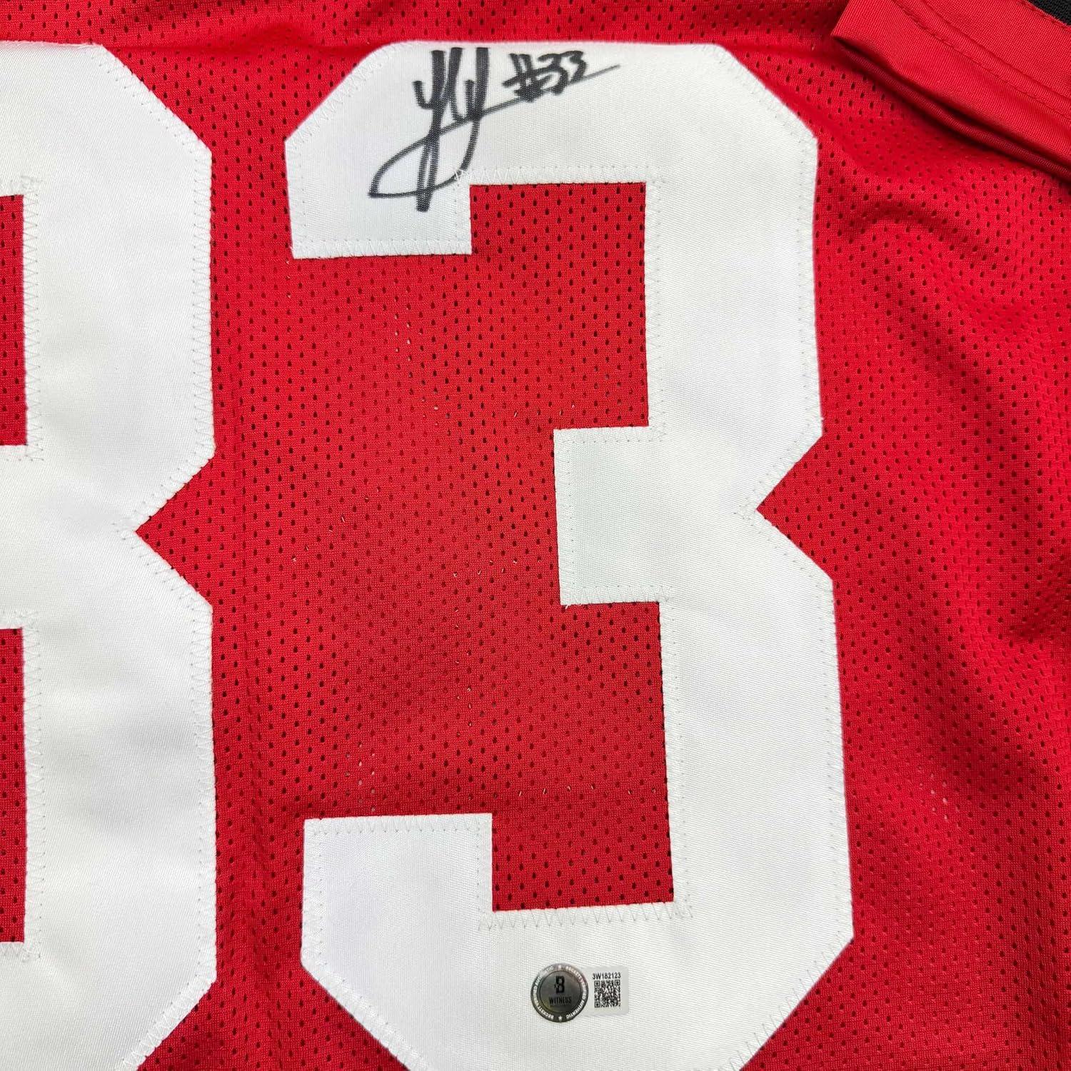 Jersey has no brand names or logos. This is a custom jersey and was not manufactured by or in any manner associated with any professional sports league or manufacturer. This custom jersey carries no professional sports league designation. The item is intended to be an autographed collectible. The custom jersey displays the name and number of the player. This item in no way is affiliated with or connected to any professional sports organization. Size is XL.