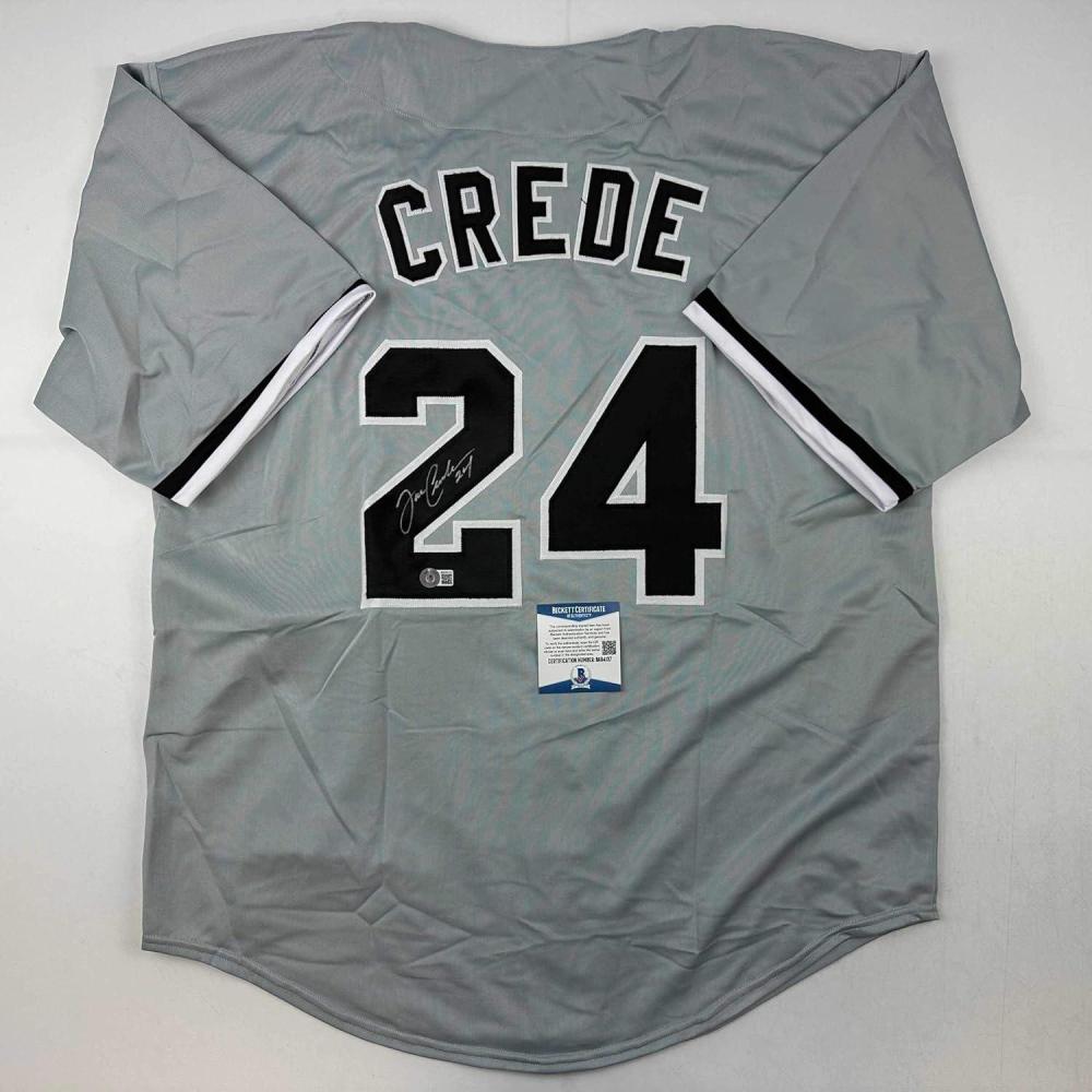 imageAutographedSigned Joe Crede Chicago Grey Baseball Jersey Beckett BAS COA