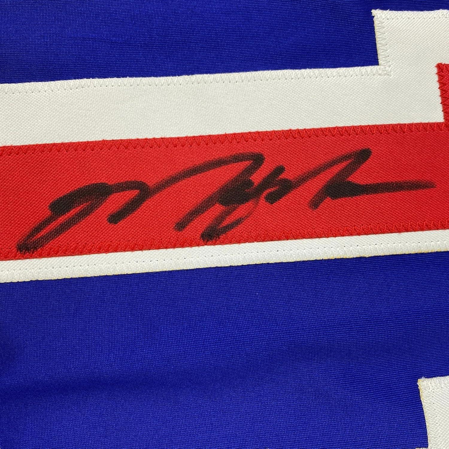 Jersey has no brand names or logos. This is a custom jersey and was not manufactured by or in any manner associated with any professional sports league or manufacturer. This custom jersey carries no professional sports league designation. The item is intended to be an autographed collectible. The custom jersey displays the name and number of the player. This item in no way is affiliated with or connected to any professional sports organization. Size is XL.