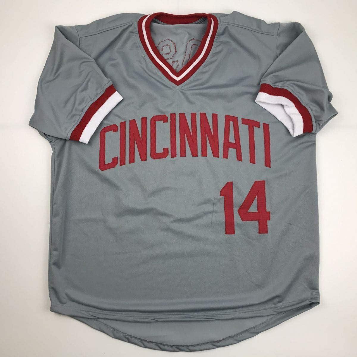 imageAutographedSigned Pete Rose Cincinnati Grey Baseball Jersey JSA COA