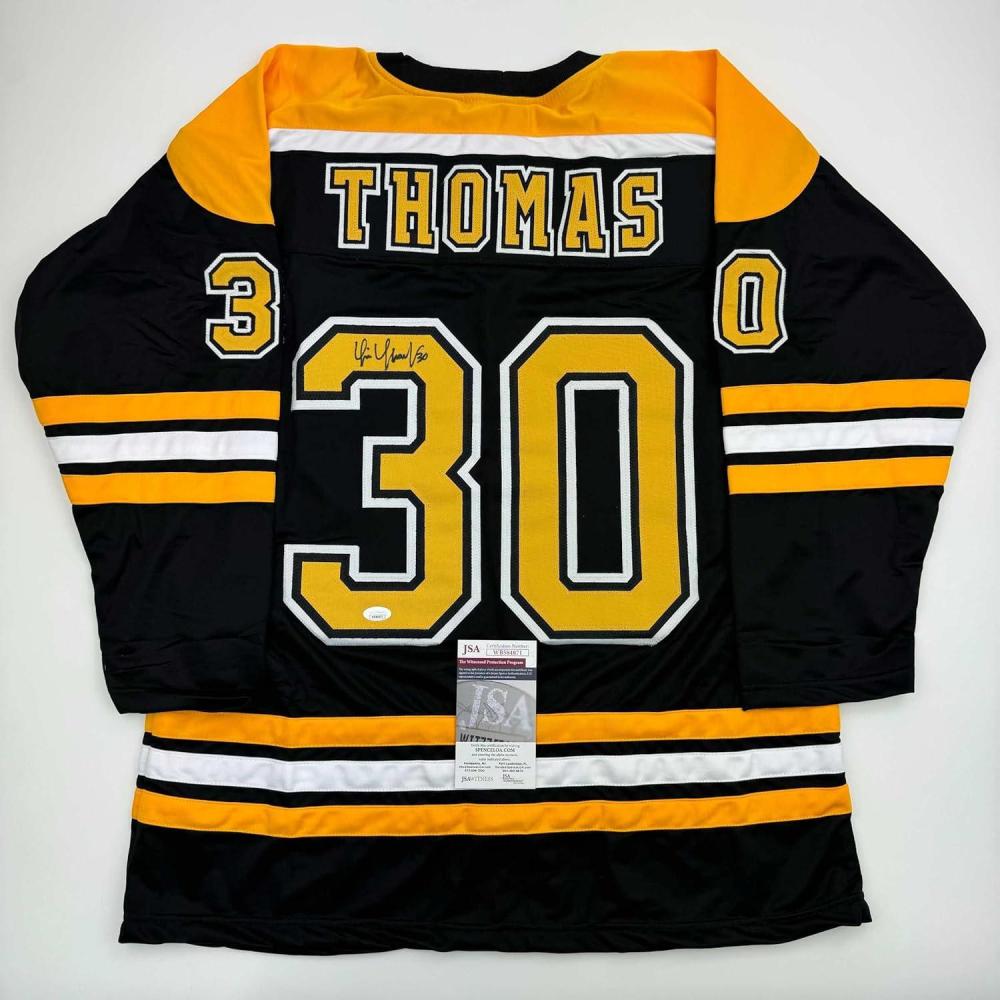 imageAutographedSigned Tim Thomas Boston Black Hockey Jersey JSA COA
