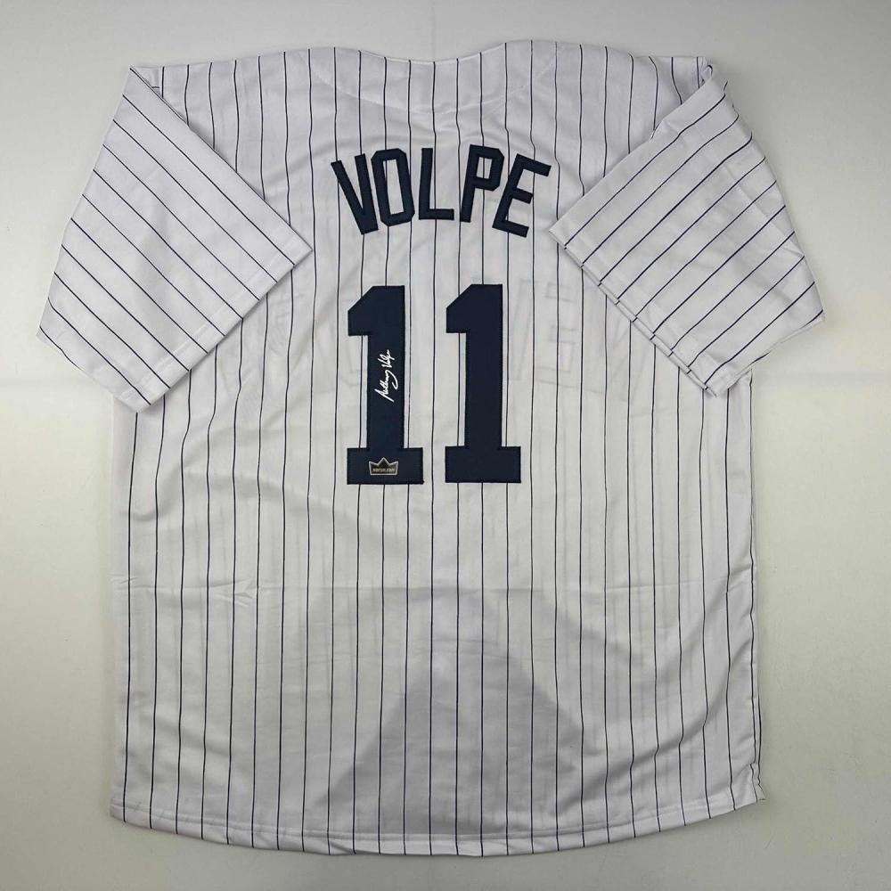 Facsimile Autographed Anthony Volpe New York Pinstripe Reprint Laser Auto Baseball Jersey Size Men’s XL