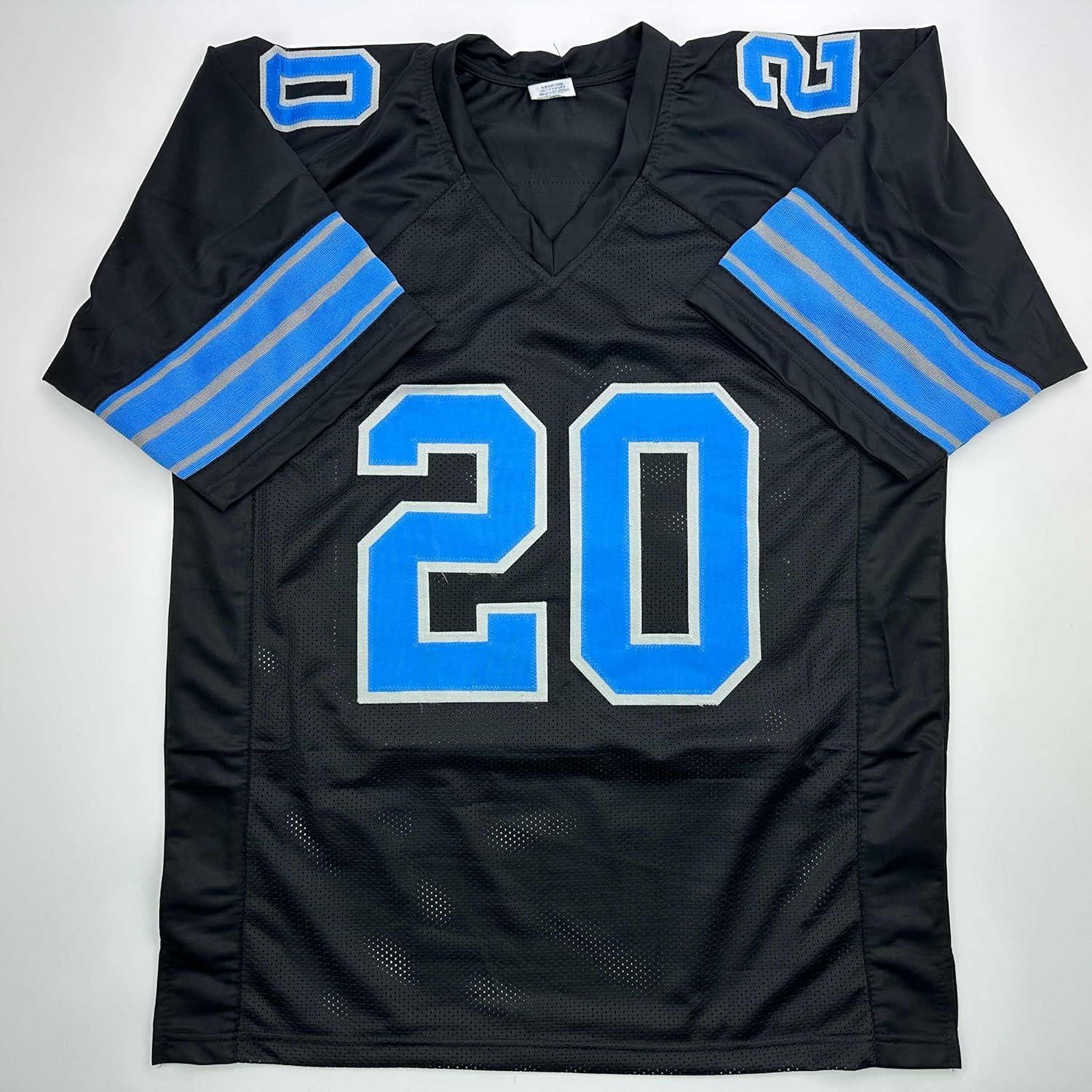 imageFacsimile Autographed Barry Sanders Detroit Black Reprint Laser Auto Football Jersey Size Mens XL
