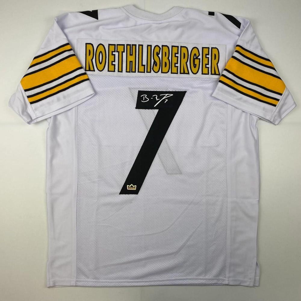 imageFacsimile Autographed Ben Roethlisberger Pittsburgh White Reprint Laser Auto Football Jersey Size Mens XL