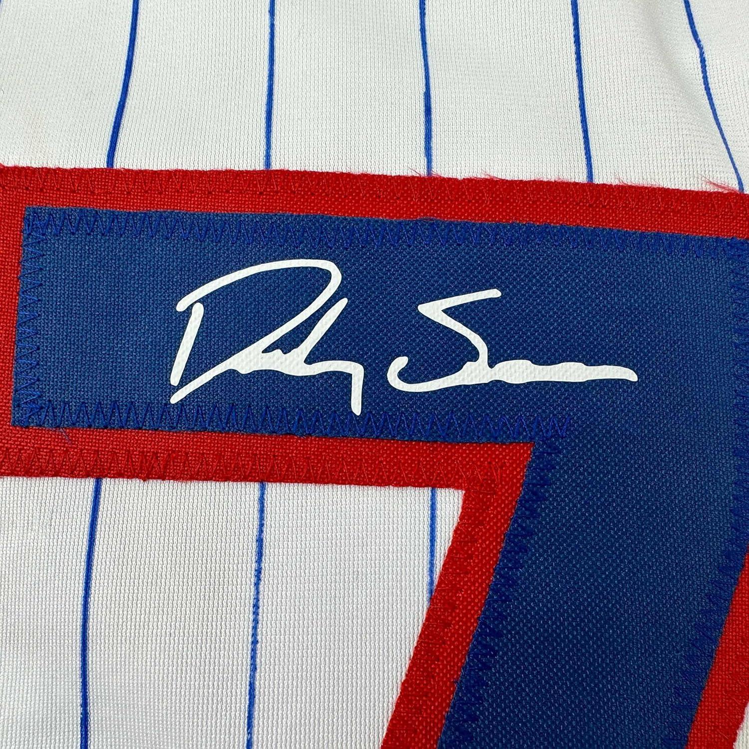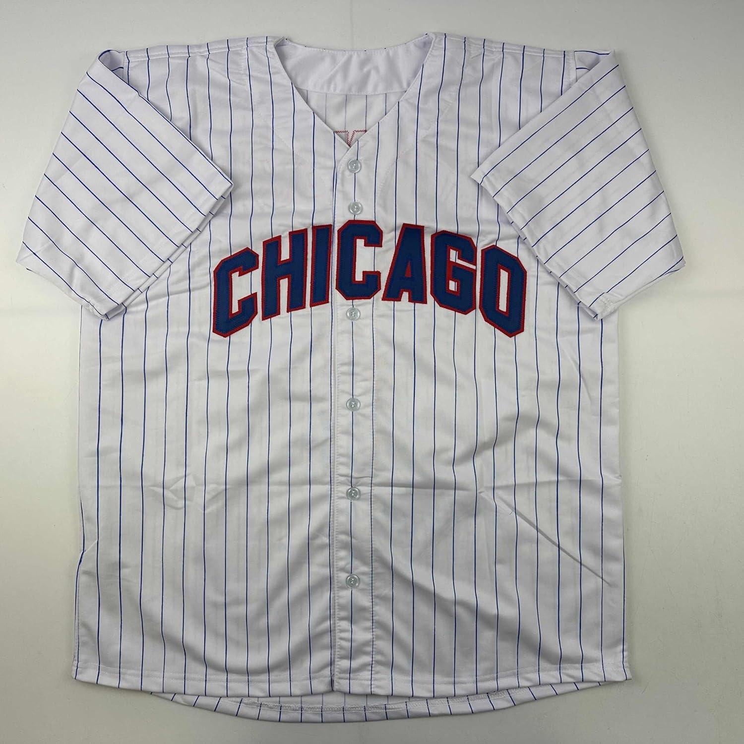 imageFacsimile Autographed Dansby Swanson Chicago Pinstripe Reprint Laser Auto Baseball Jersey Size Mens XL