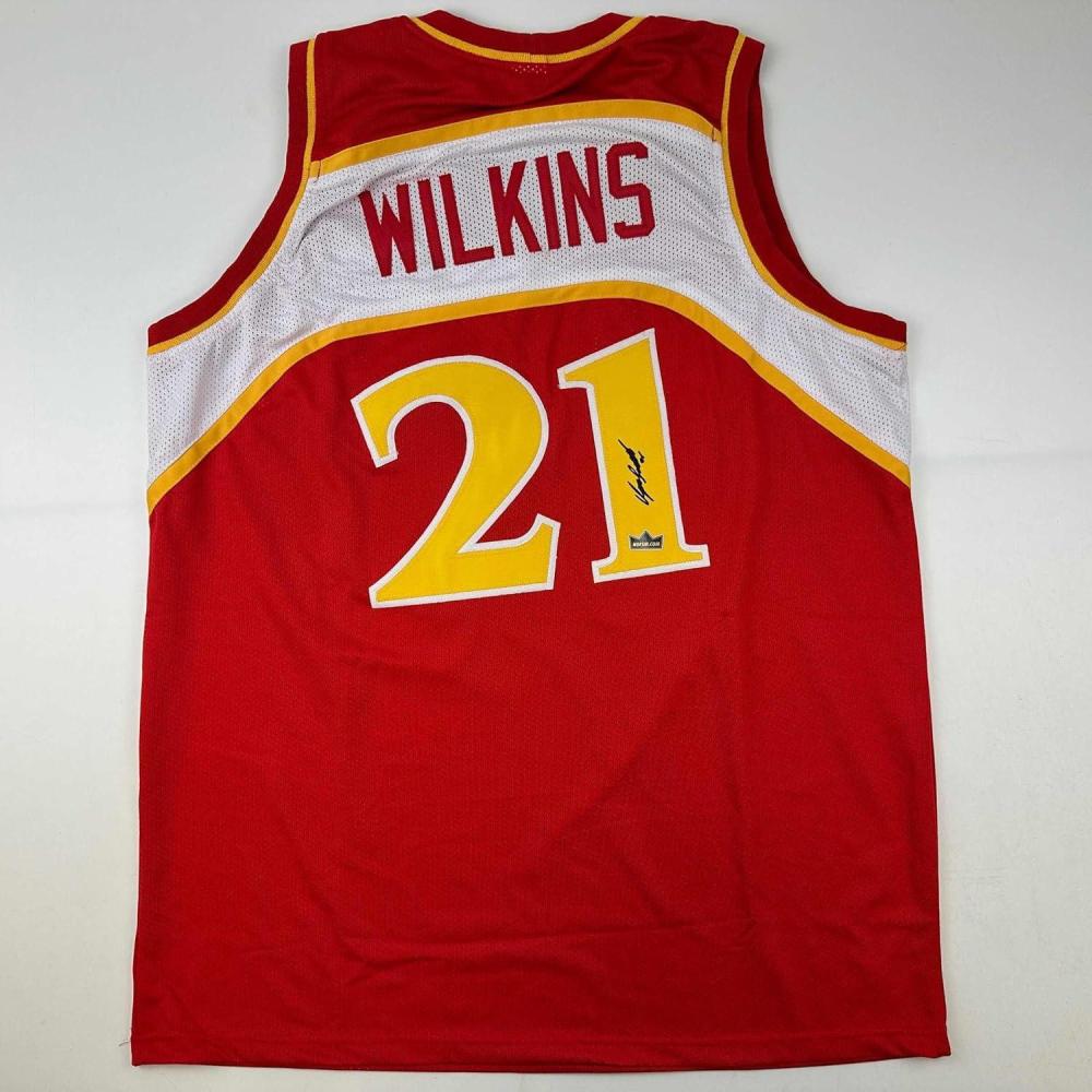 Facsimile Autographed Dominique Wilkins Atlanta Red Reprint Laser Auto Basketball Jersey Size Men’s XL