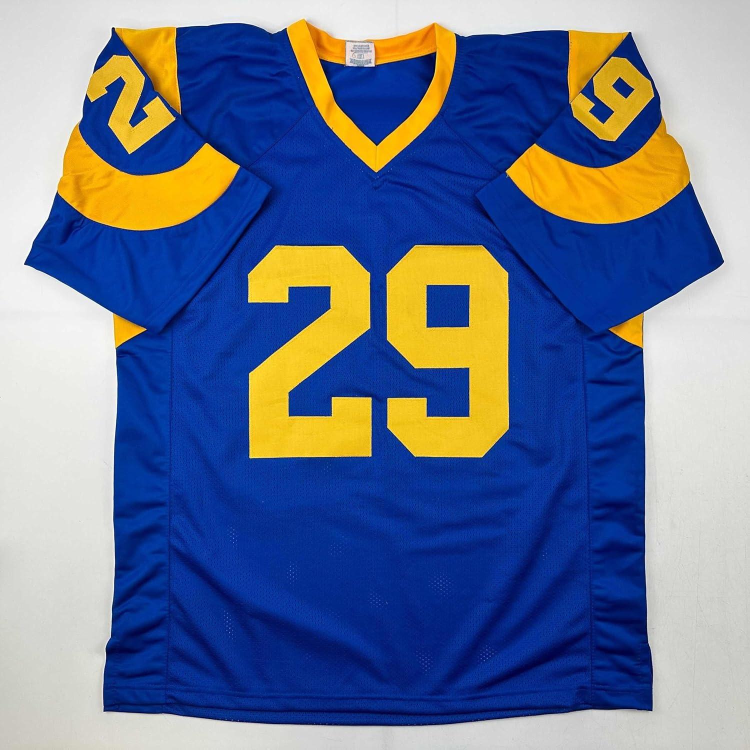 imageFacsimile Autographed Eric Dickerson Los Angeles LA Royal Blue Retro Reprint Laser Auto Football Jersey Size Mens XL