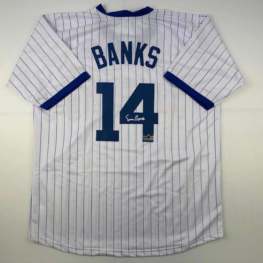 Be the first to review “Facsimile Autographed Ernie Banks Chicago Pinstripe Reprint Laser Auto Baseball Jersey Size Men’s XL”