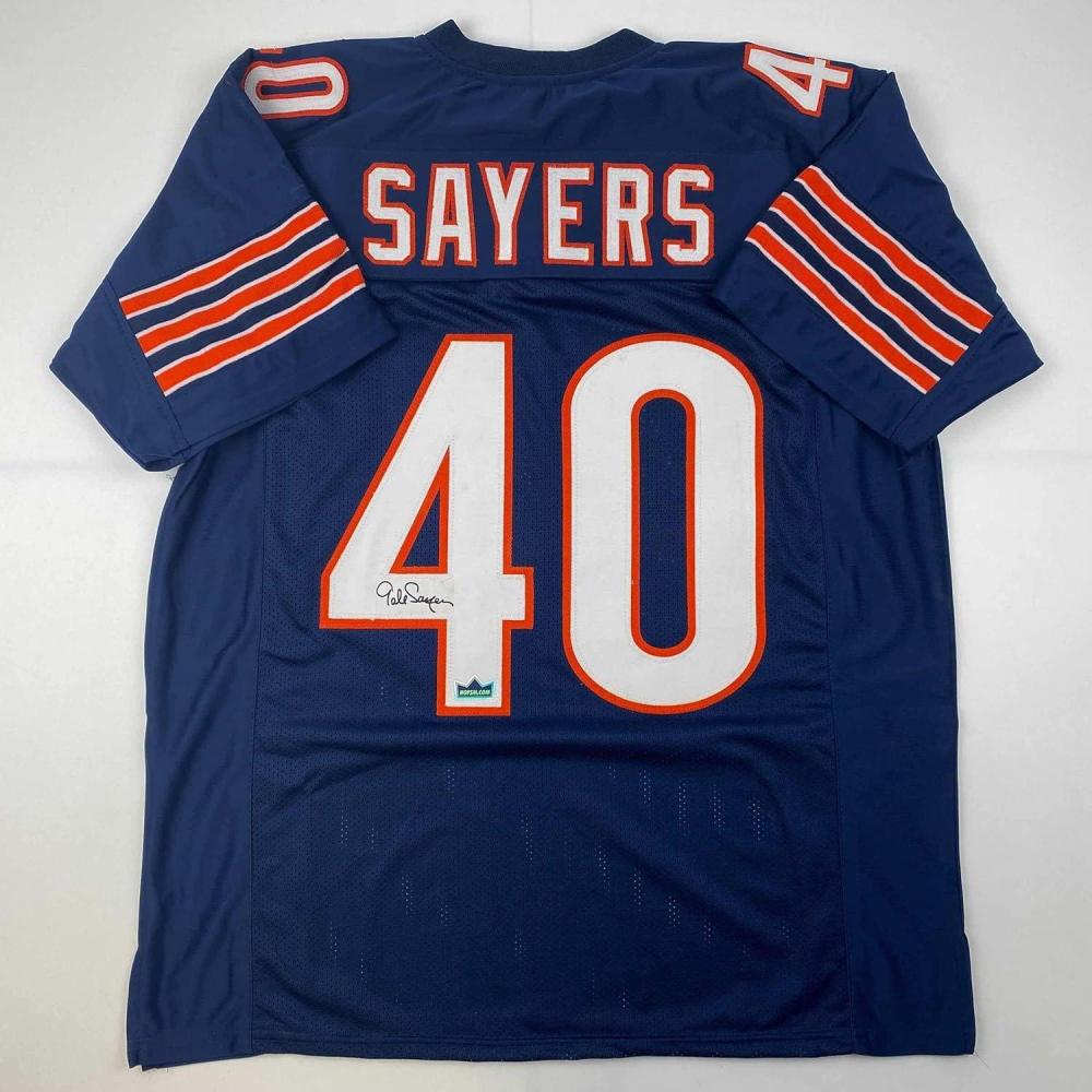 Facsimile Autographed Gale Sayers Chicago Blue Reprint Laser Auto Football Jersey Size Men’s XL