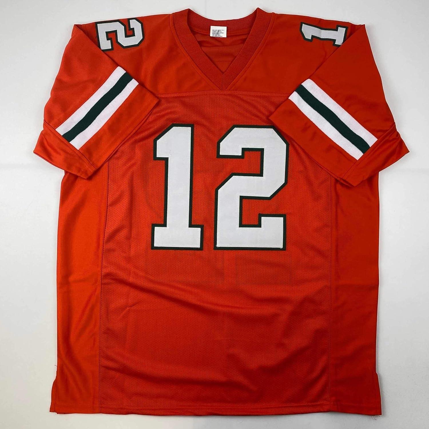 Be the first to review “Facsimile Autographed Jim Kelly Miami Orange Reprint Laser Auto College Football Jersey Size Men’s XL”