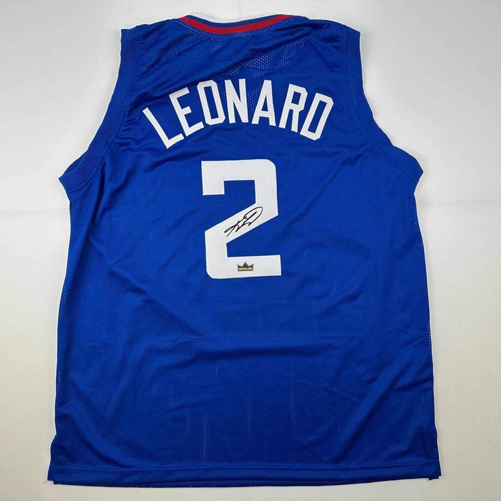 imageFacsimile Autographed Kawhi Leonard Los Angeles LA Blue Reprint Laser Auto Basketball Jersey Size Mens XL