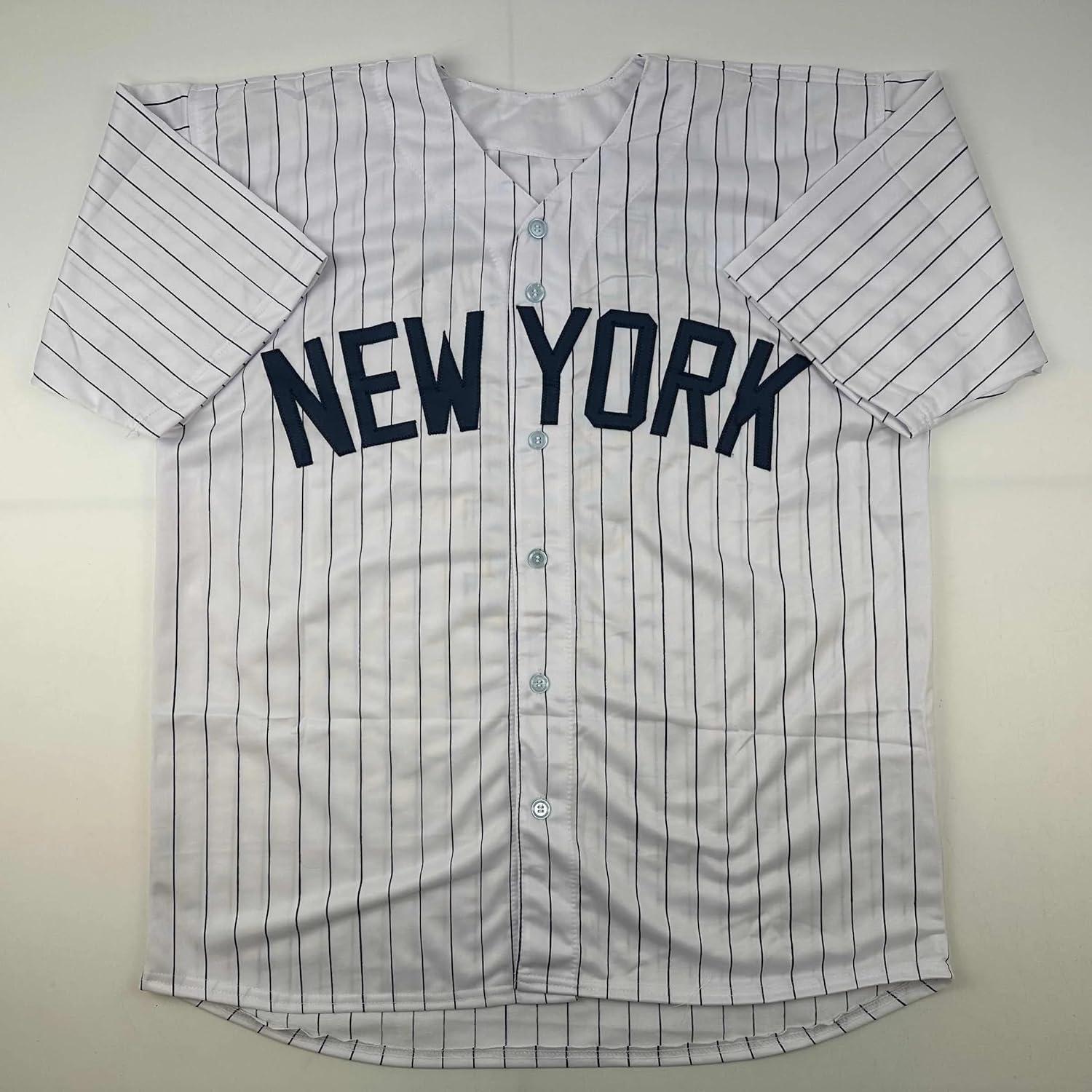 imageFacsimile Autographed Lou Gehrig New York Pinstripe Reprint Laser Auto Baseball Jersey Size Mens XL