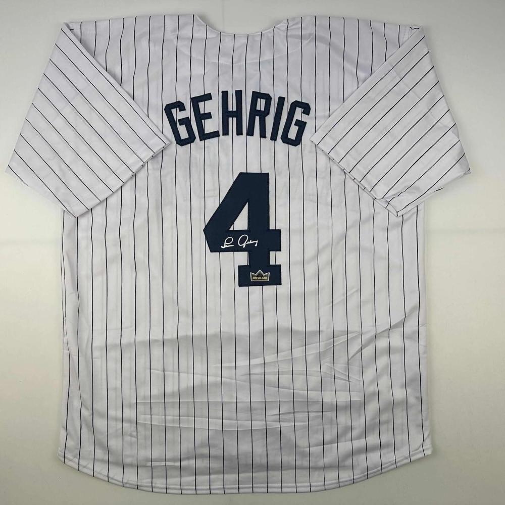 Facsimile Autographed Lou Gehrig New York Pinstripe Reprint Laser Auto Baseball Jersey Size Men’s XL