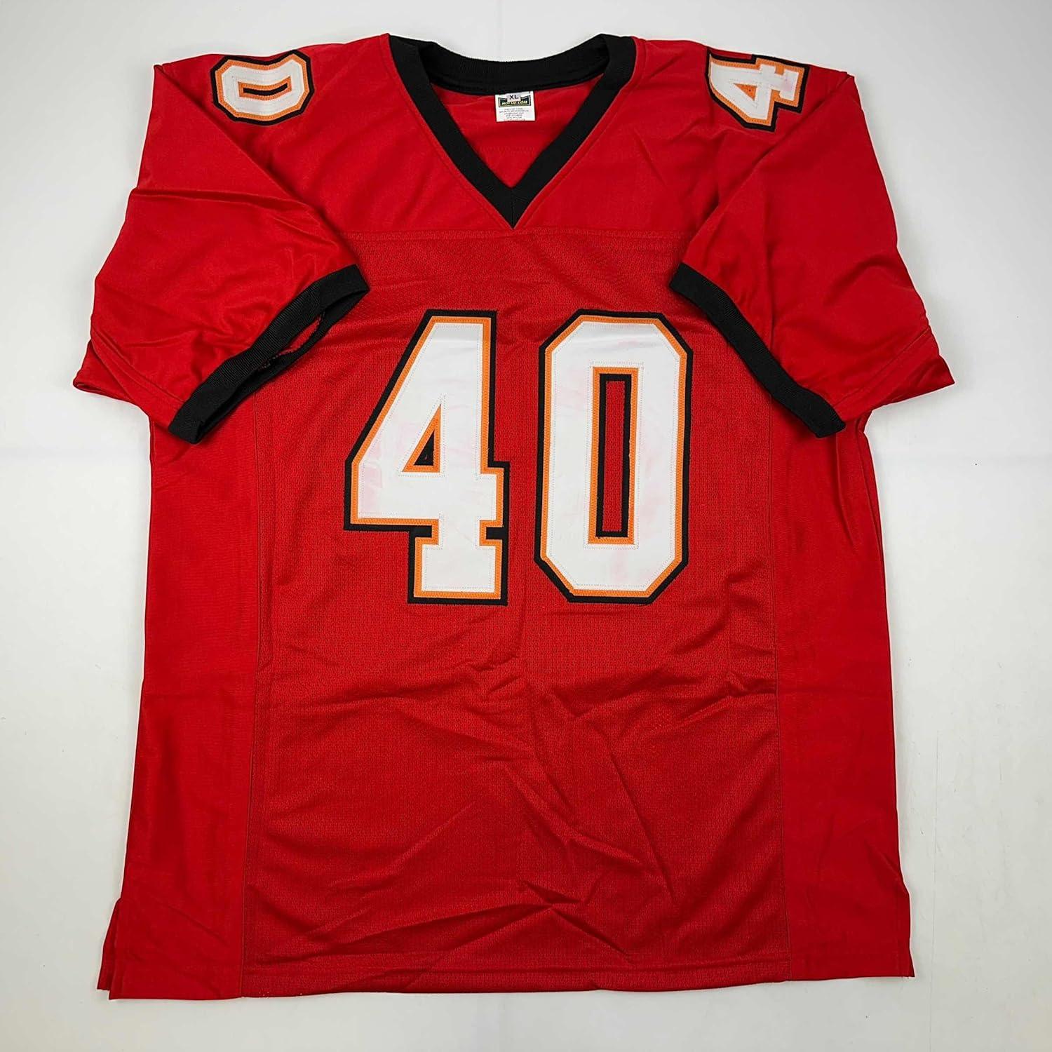 Facsimile Autographed Mike Alstott Tampa Bay Red Reprint Laser Auto Football Jersey Size Men’s XL