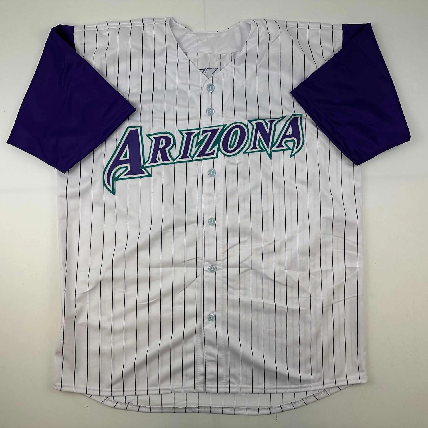 Facsimile Autographed Randy Johnson Arizona Pinstripe Reprint Laser Auto Baseball Jersey Size Men’s XL