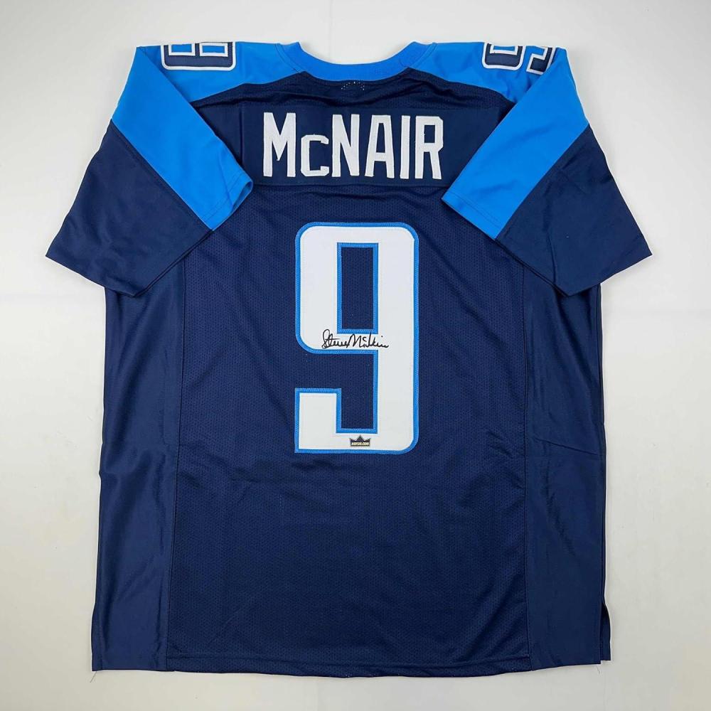 Facsimile Autographed Steve McNair Tennessee Navy Blue Reprint Laser Auto Football Jersey Size Men’s XL
