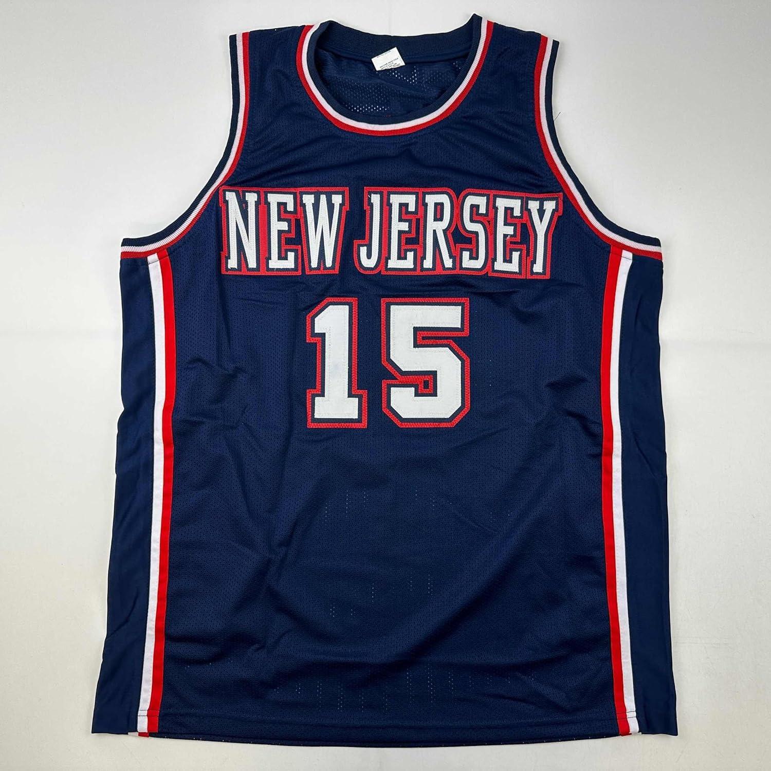 Facsimile Autographed Vince Carter New Jersey NJ Blue Reprint Laser Auto Basketball Jersey Size Men’s XL