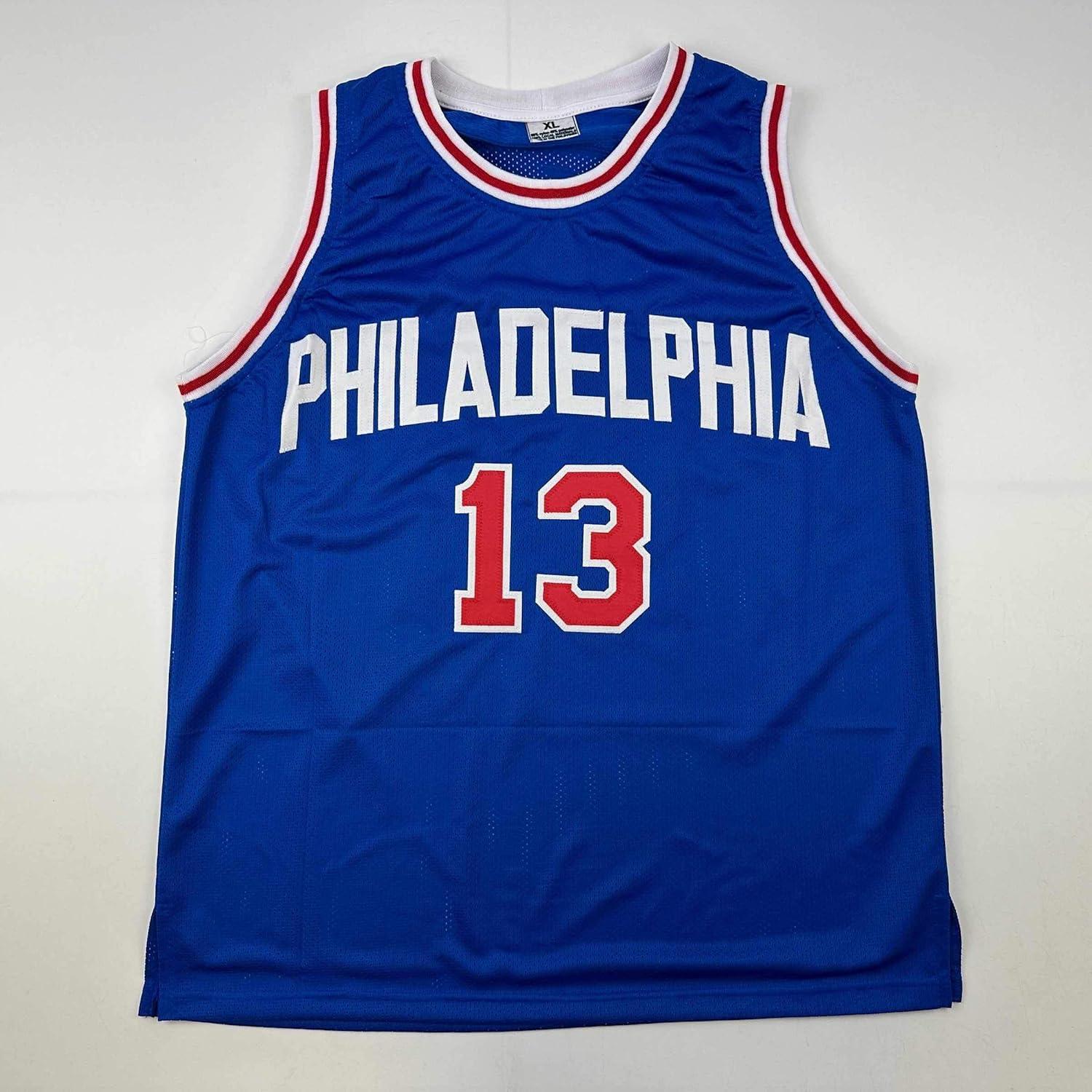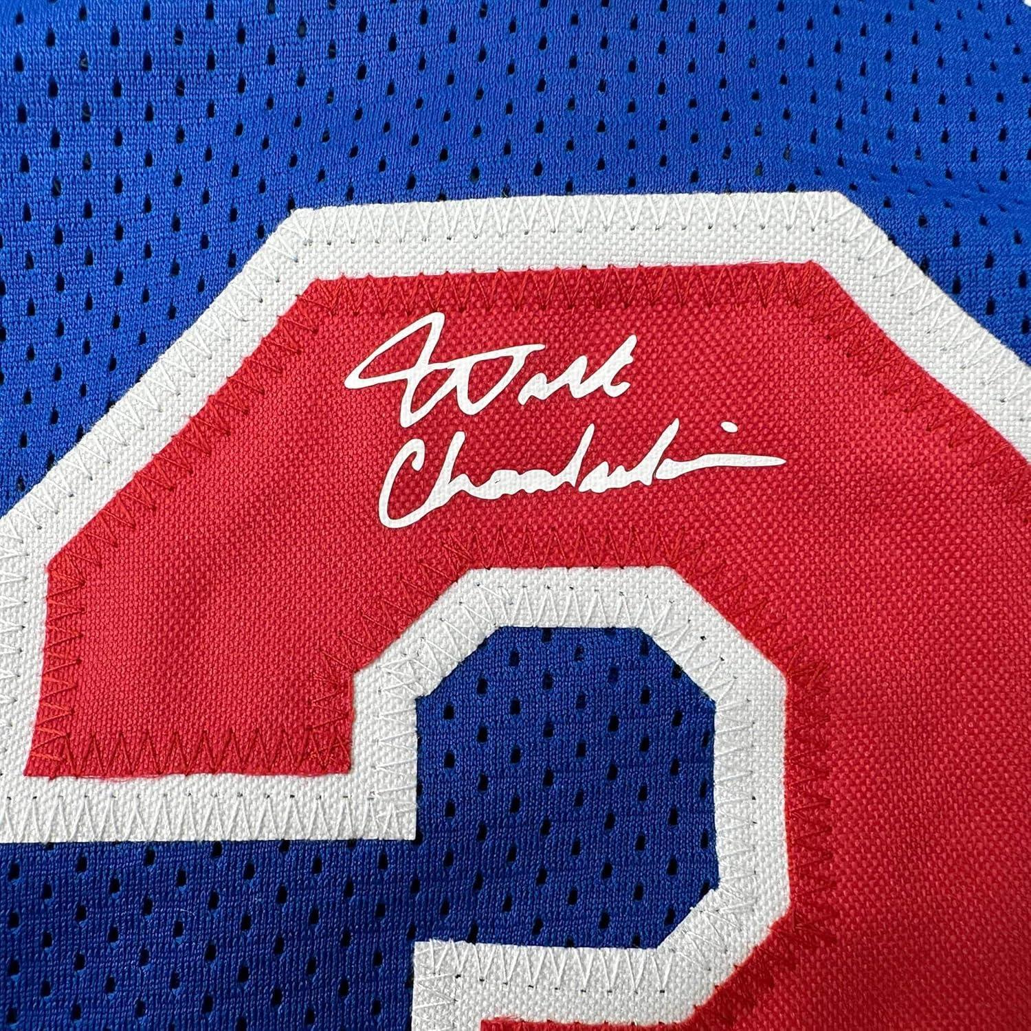 Facsimile Autographed Wilt Chamberlain Philadelphia Blue Reprint Laser Auto Basketball Jersey Size Men’s XL