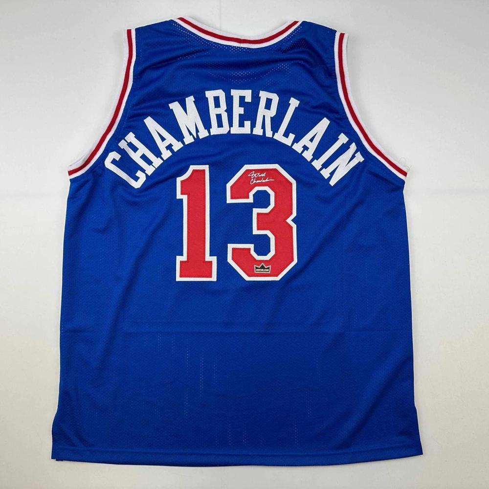 imageFacsimile Autographed Wilt Chamberlain Philadelphia Blue Reprint Laser Auto Basketball Jersey Size Mens XL