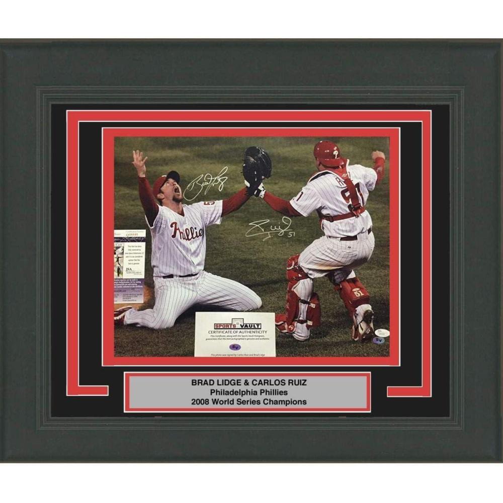 imageFramed AutographedSigned Brad Lidge amp Carlos Ruiz Dual 2008 World Series Philadelphia Phillies 16x20 Baseball Photo JSA COA