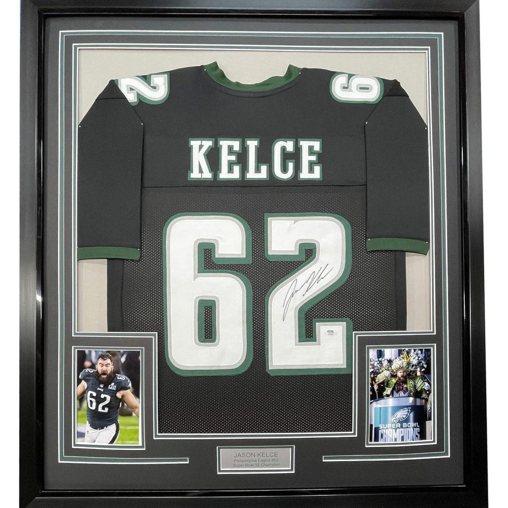 imageFramed AutographedSigned Jason Kelce 33x42 Philadelphia Black Football Jersey JSA COA