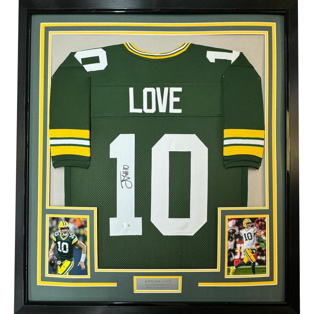 imageFramed AutographedSigned Jordan Love 35x39 Green Bay Green Football Jersey Beckett BAS COA