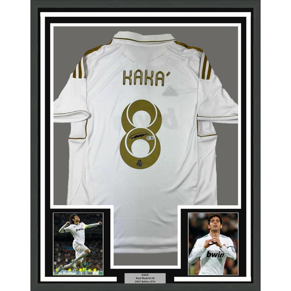 imageFramed AutographedSigned Ricardo Kaka 35x39 Real Madrid WhiteGold Retro Soccer Futbol Jersey Beckett BAS COA