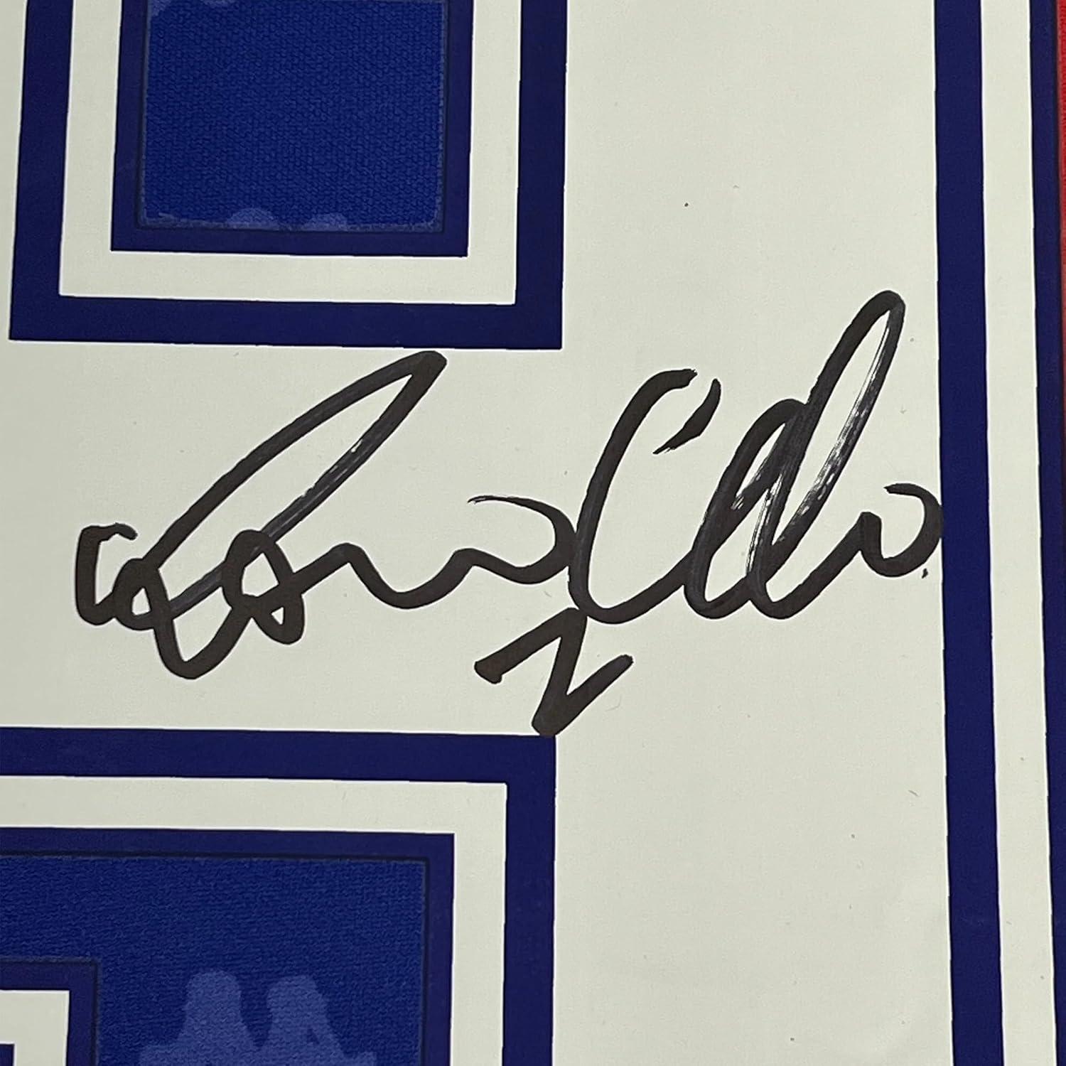 imageFramed AutographedSigned Ronaldo Nazario 35x39 FC Barcelona RedBlue Soccer Jersey Beckett BAS COA