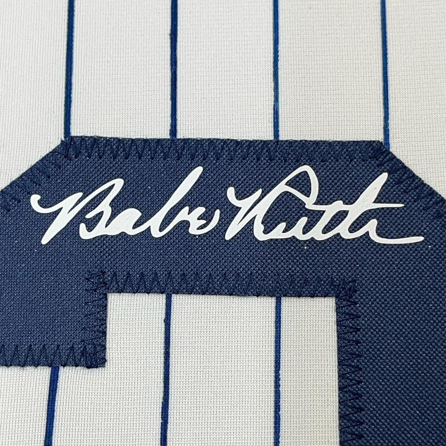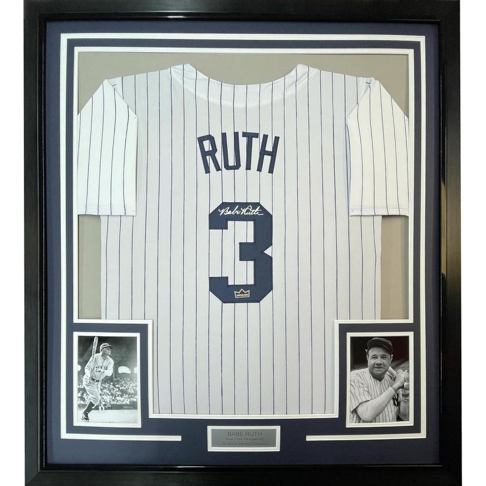 Framed Facsimile Autographed Babe Ruth 35×39 New York Pinstripe Reprint Laser Auto Baseball Jersey