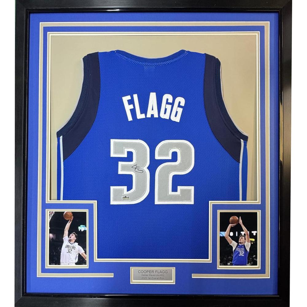 Framed Facsimile Autographed Cooper Flagg 35×39 Dallas Blue Reprint Laser Auto Basketball Jersey