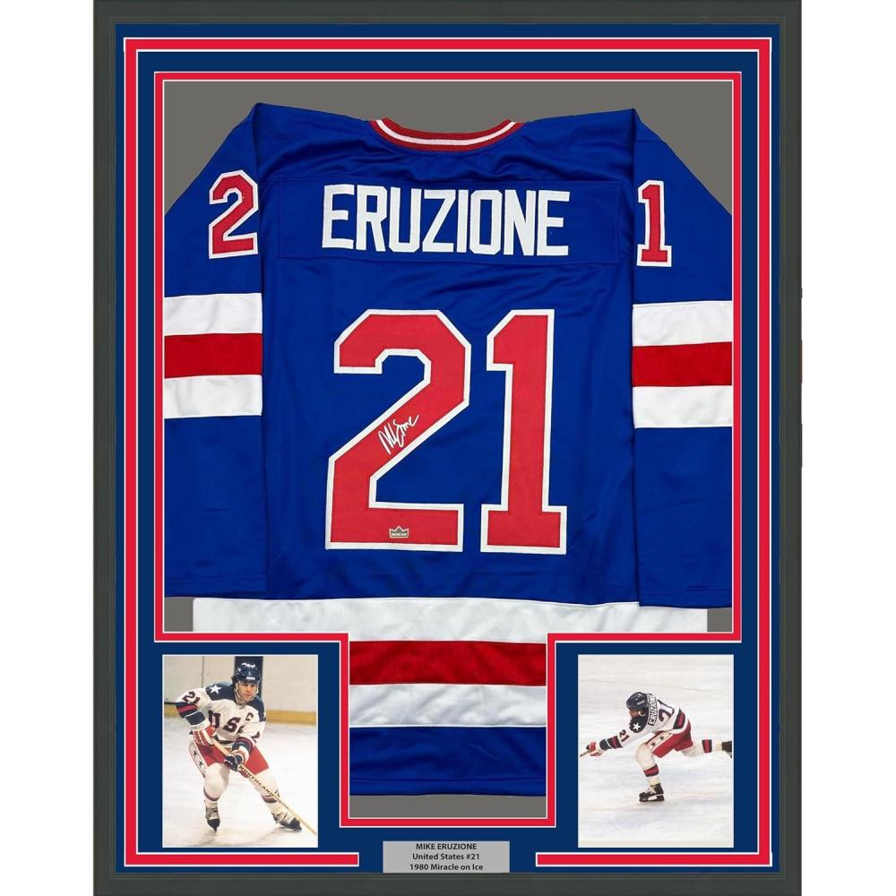 imageFramed Facsimile Autographed Mike Eruzione 35x39 United States USA Blue 1980 Miracle on Ice Reprint Laser Auto Hockey Jersey
